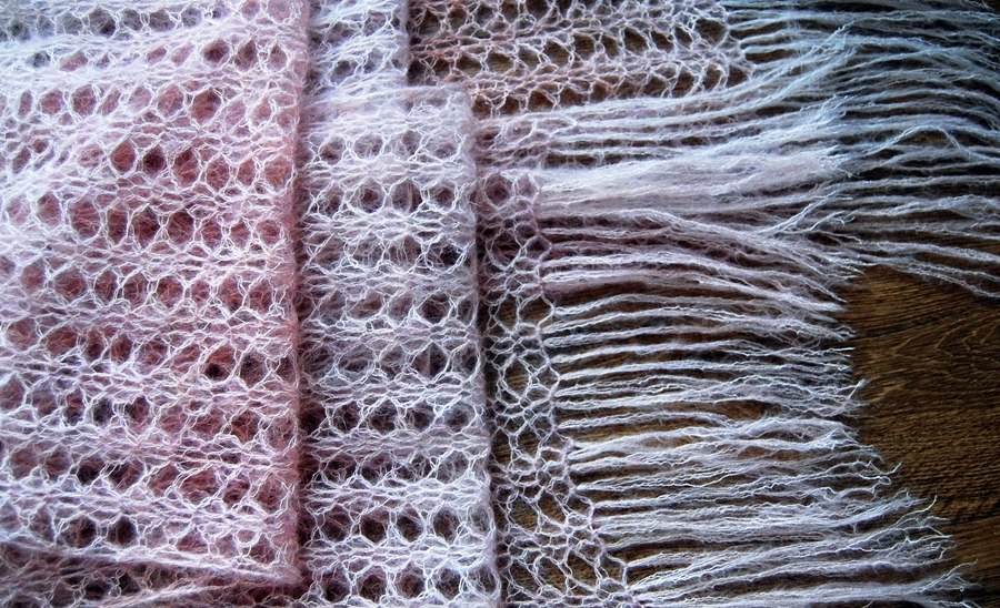 Szal delikatnie uprać, zblokować.