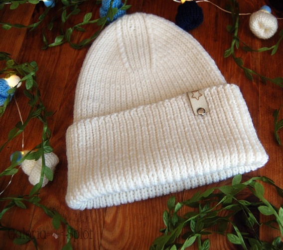 czapka wywijana biały- wełna organiczna