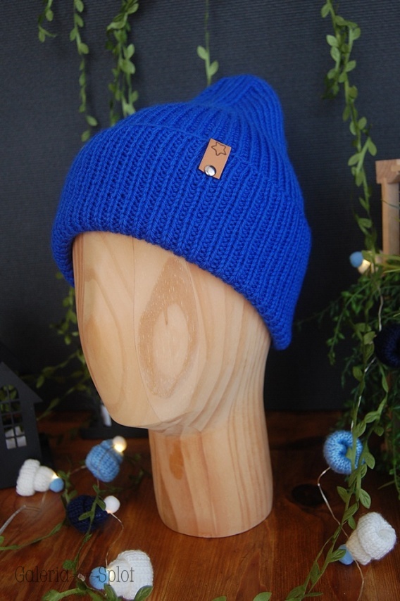 czapka wywijana ciemny niebieski- wełna organiczna